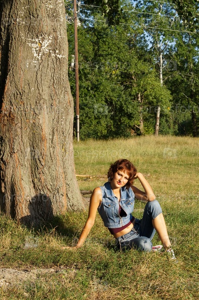 Молодая девушка на фоне леса
