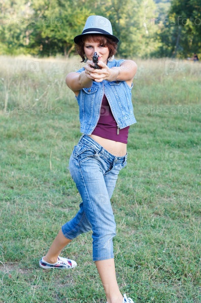Девушка в шляпе с пистолетом