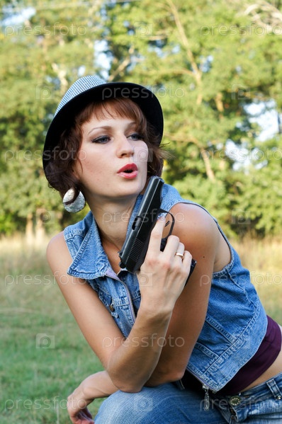 Девушка в шляпе с пистолетом