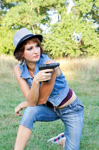 Девушка в шляпе с пистолетом