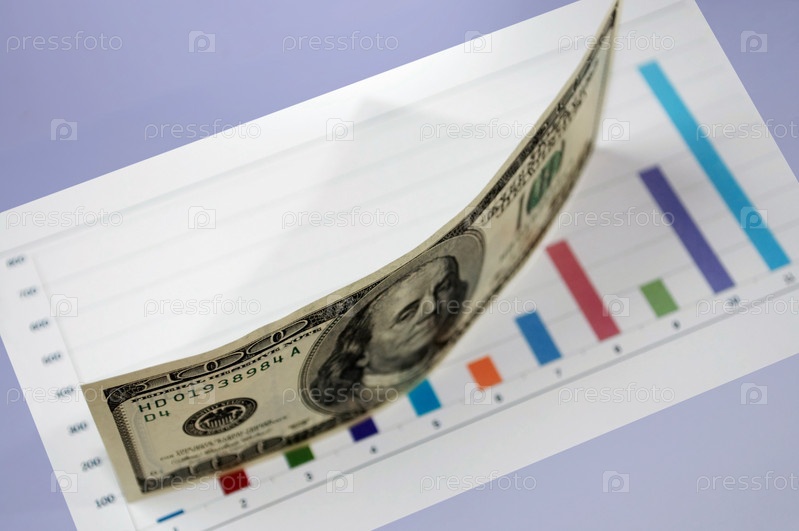 Стодолларовая банкнота на листе с графиком
