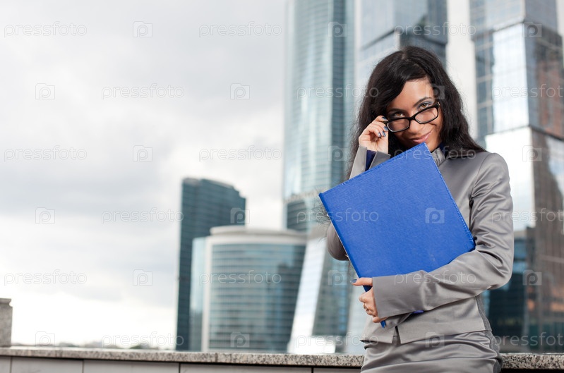 Бизнес-леди на фоне небоскребов