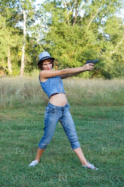 Девушка в шляпе с пистолетом