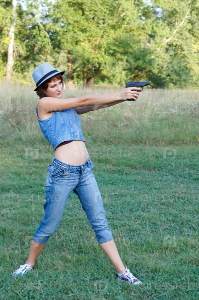 Девушка в шляпе с пистолетом