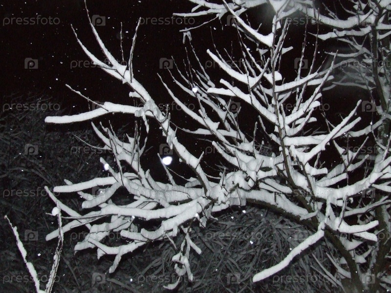 Покрытые снегом ветви дерева