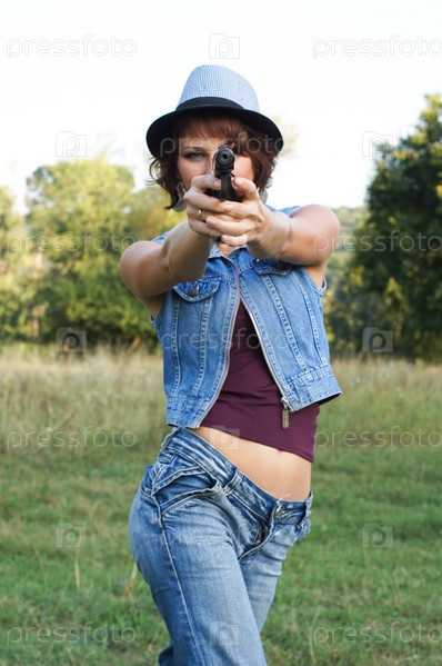 Девушка в шляпе с пистолетом