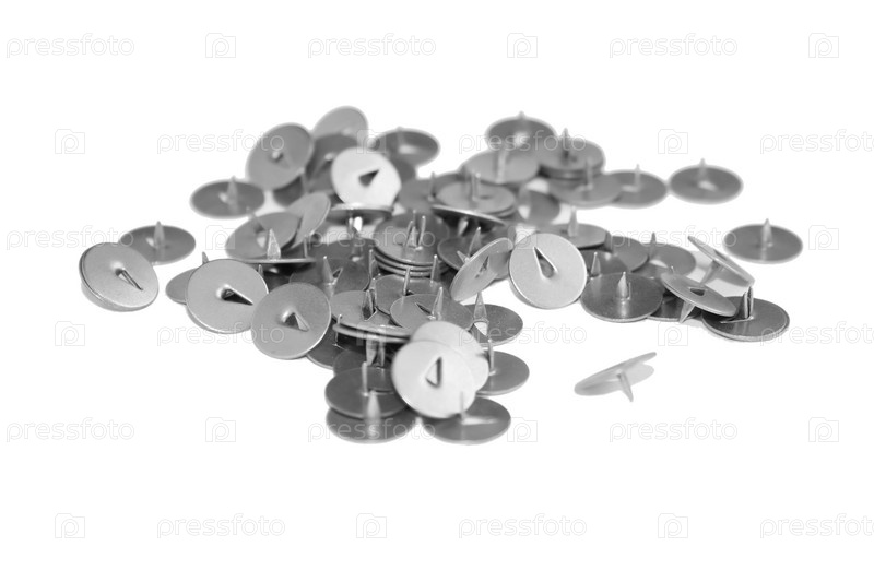 Канцелярские кнопки, изолированные на белом фоне