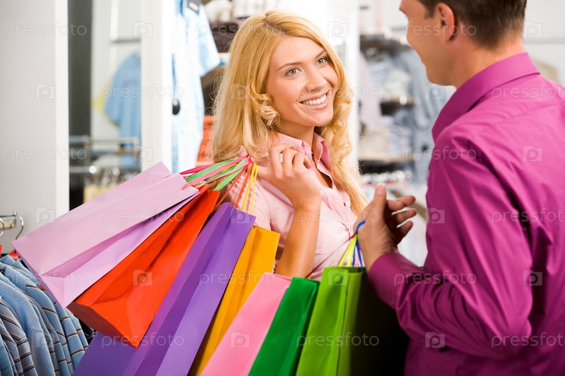 Портрет счастливой женщины, общающейся со своим парнем поблизости
