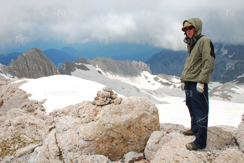 Турист на фоне горного пейзажа