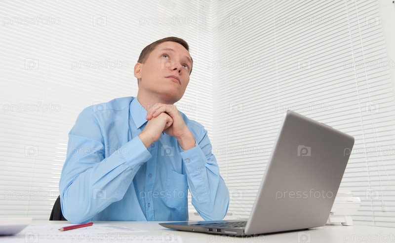 Красивый молодой человек сидит, задумавшись