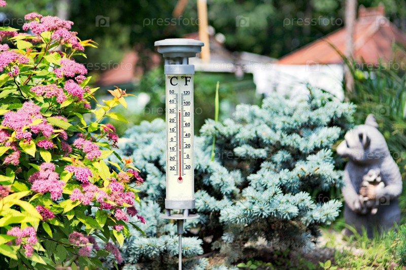 Современный стильный уличный термометр в саду
