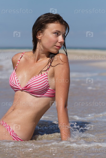 Молодая девушка сидит в волнах