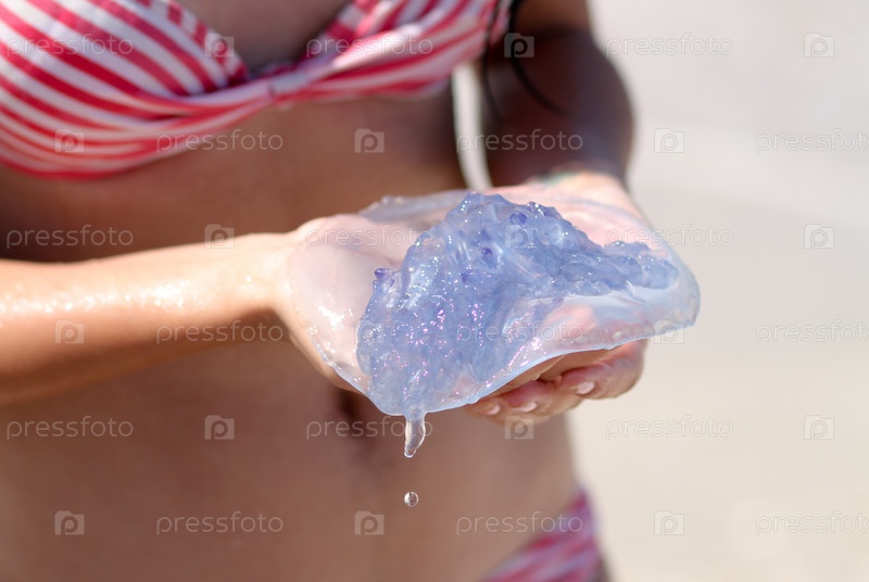 Неосторожная девушка держит медузу