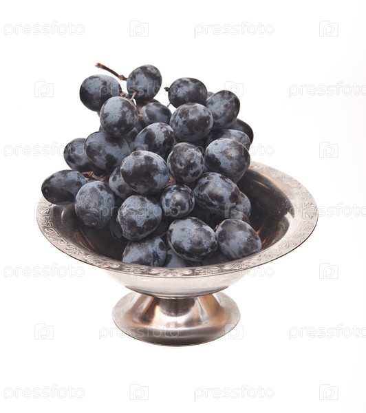 Гроздь черного винограда на белом фоне