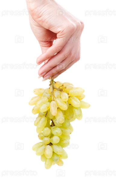 Кисть зеленого винограда в руке женщины
