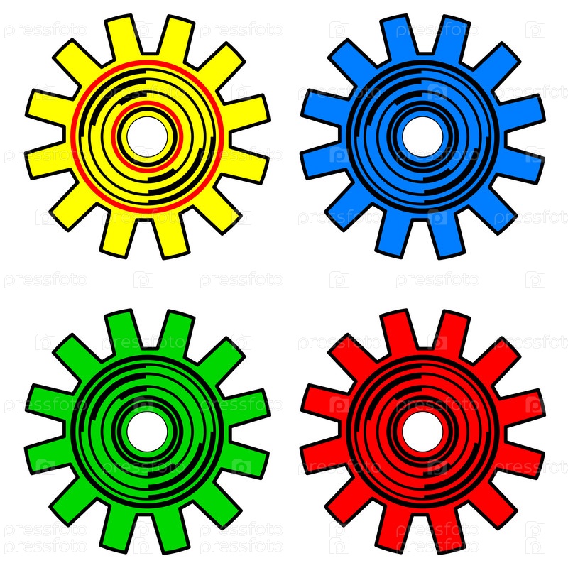 Цветные шестерни на белом фоне, вектор