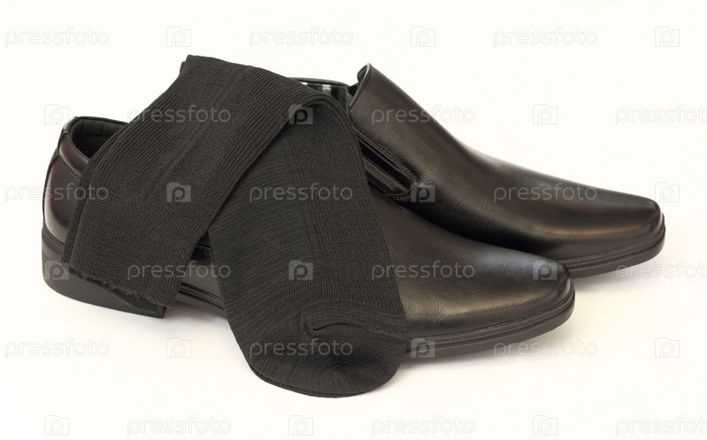 Мужские черные ботинки и носки, изолированные на белом фоне