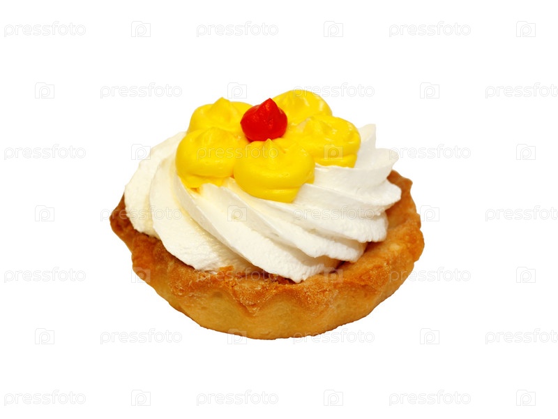 Сладкое пирожное с кремом, изолированнок на белом