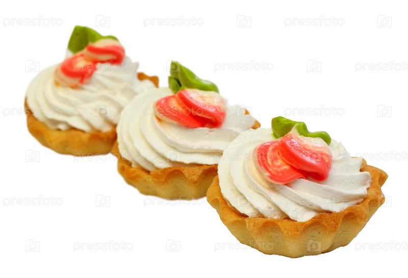 Сладкие пирожные с кремом, изолированные на белом