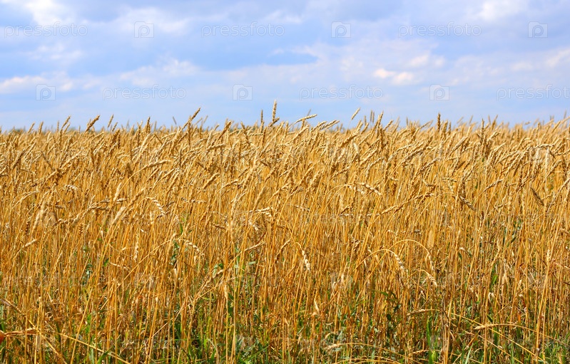 Спелые желтые злаки растут на сельскохозяйственном поле