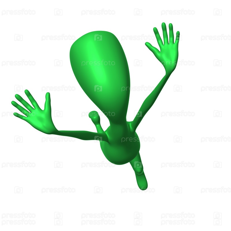 Зеленая 3D-кукла стоит на руках