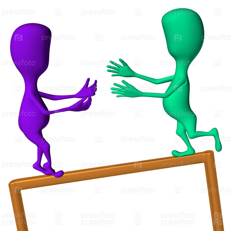 Фиолетовая 3D-кукла поощряет вторую куклу сделать шаг вперед