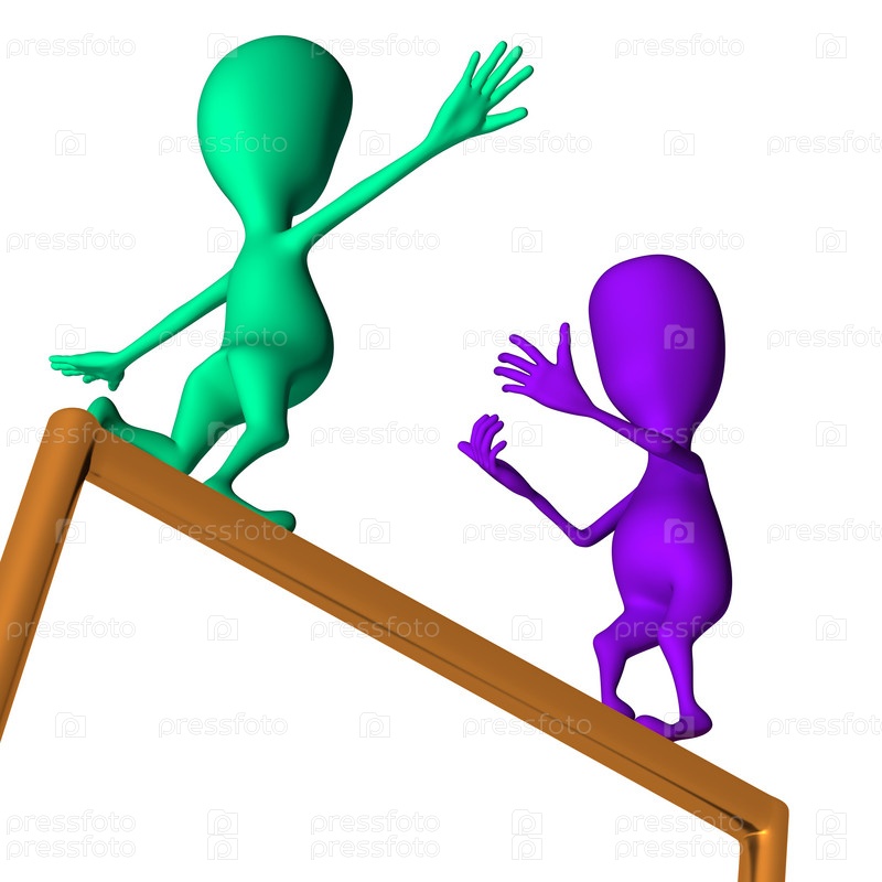 Фиолетовая 3D-кукла поощряет вторую куклу сделать шаг вперед