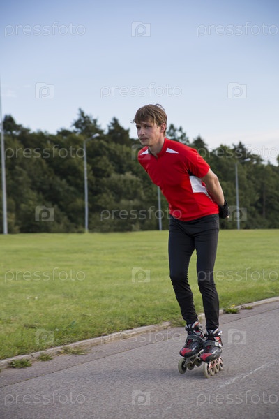 Спортсмен едет на новых роликах