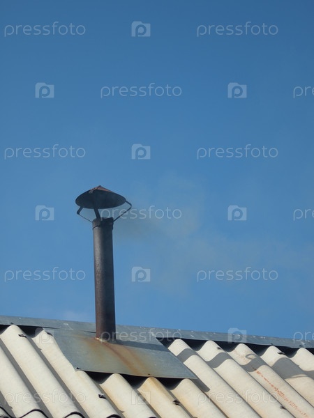 Труба на крыше на фоне голубого неба