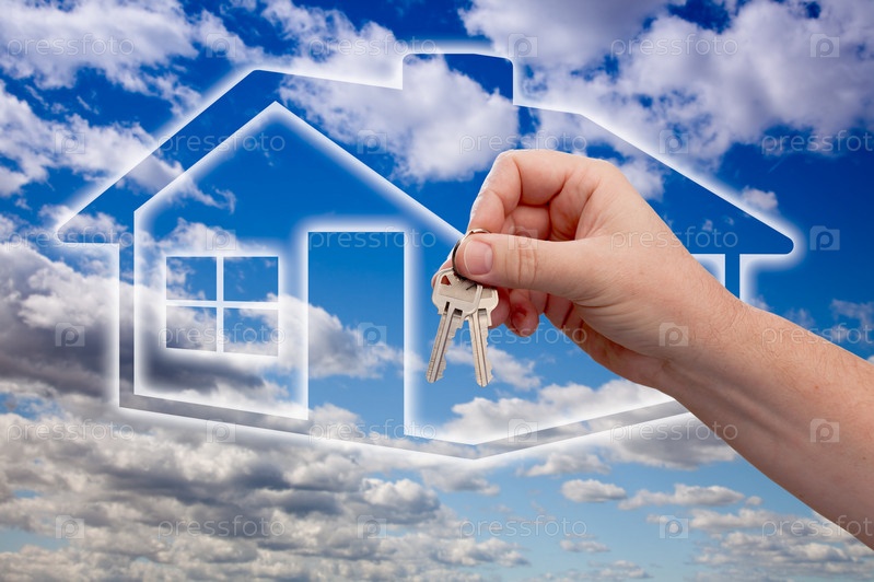 Передача ключей на значок Призраки дома, облака и небо