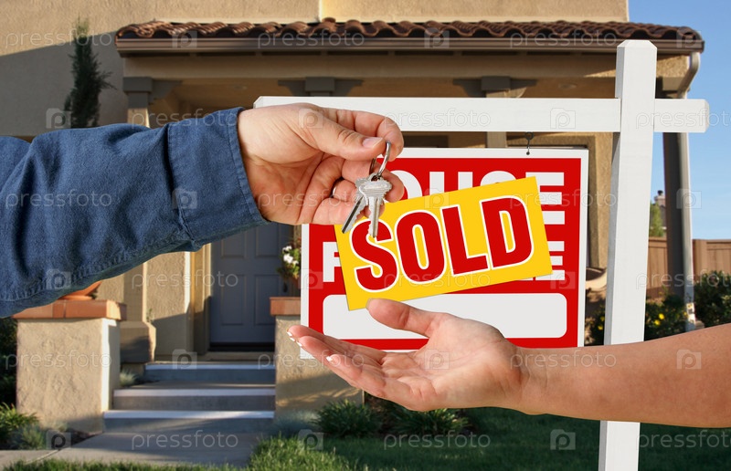 Передача ключей на фоне нового дома