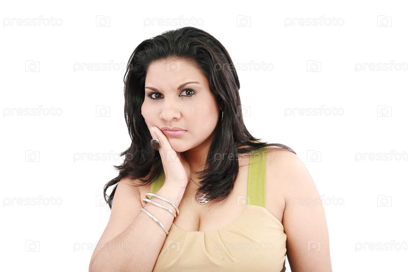 Темноволосая женщина с зубной болью, изолированная на белом фоне