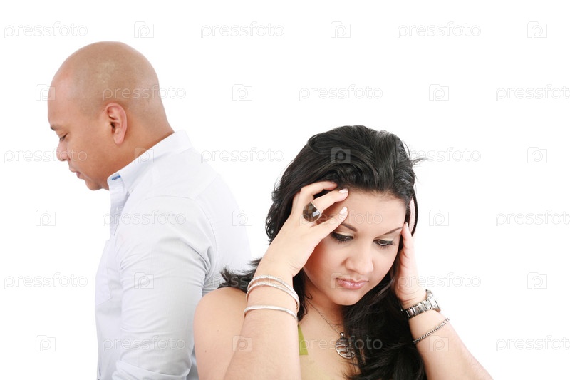 Сердитая пара, изолированная на белом фоне. Фокус на женщине