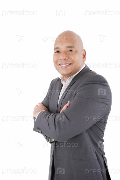 Приветливый, вызывающий доверие бизнесмен смотрит в камеру, изолированный на белом фоне