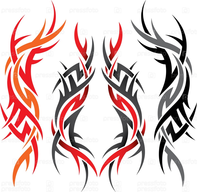 Набор изящных готических узоров разных цветов на белом фоне