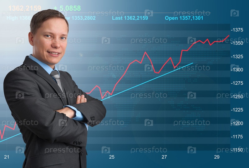 Деловой человек на фоне графика фондового рынка