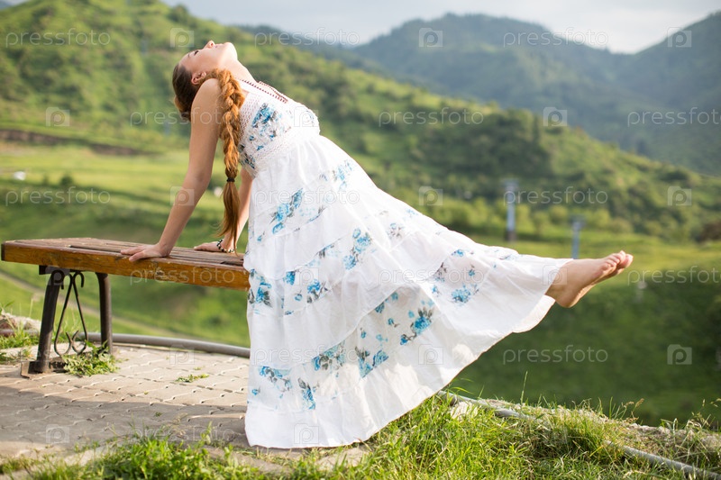Красивая женщина с длинными волосами на открытом воздухе