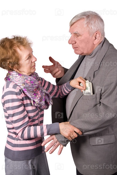 Пожилая пара Жена берет у мужа денег