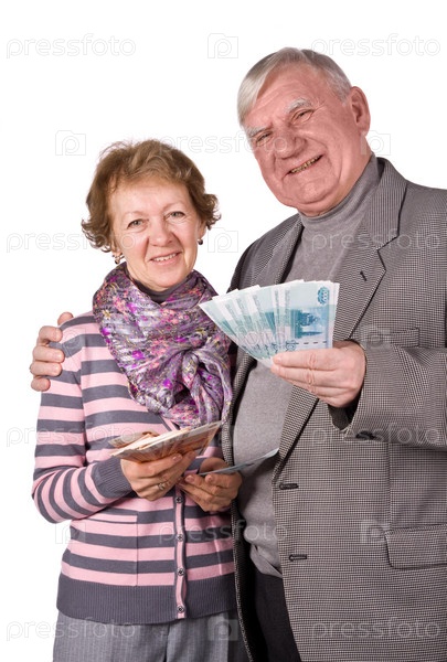 Пожилые супруги с деньгами в руках