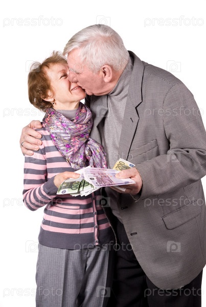 Пожилые супруги с деньгами в руках