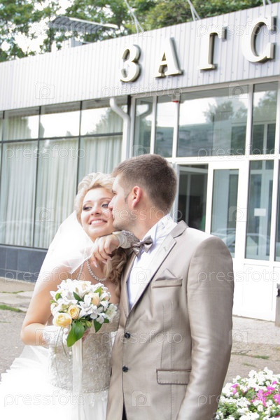 Молодая супружеская пара в день свадьбы