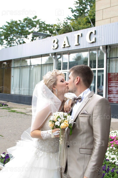 Молодая супружеская пара в день свадьбы