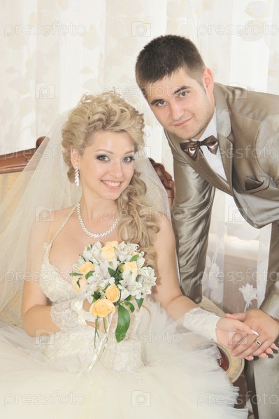 Молодая супружеская пара в день свадьбы