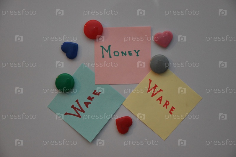 Концепция бизнеса "товар-деньги-товар" из стикеров и магнитов
