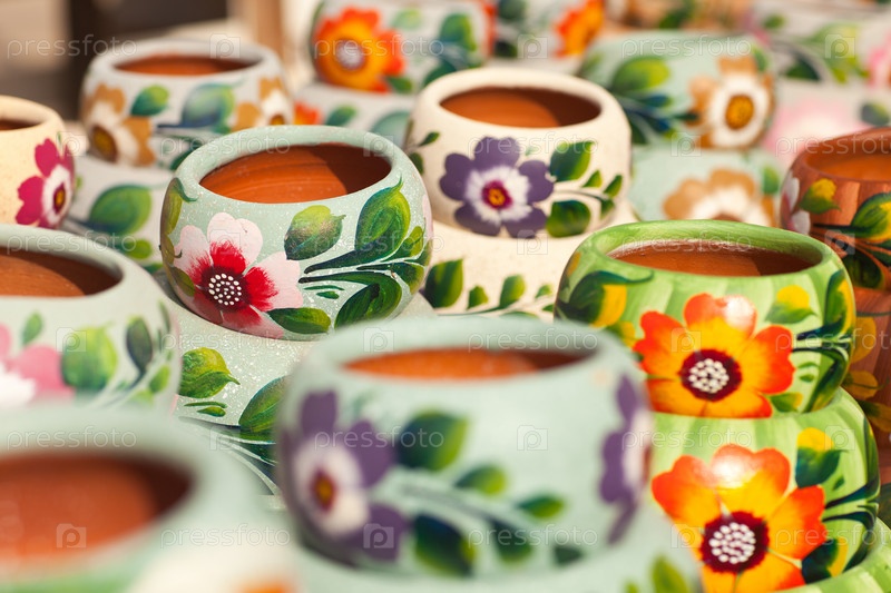Ярко окрашенные керамические горшки