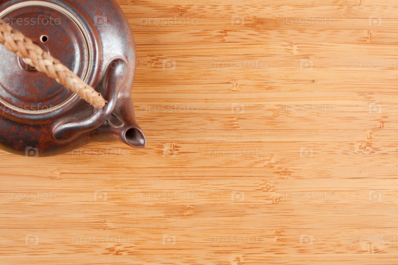 Чайник и бамбуковая поверхность