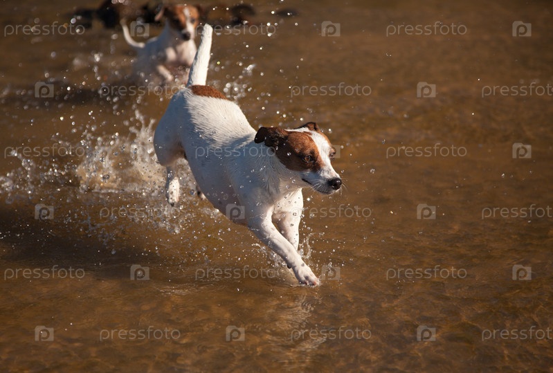 Игривый Джек Рассел в воде
