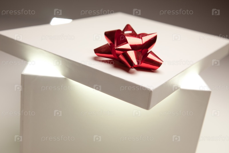 Подарочная коробка с красным бантом и светящимся содержимым