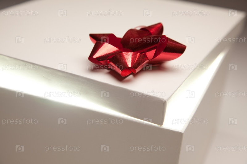 Подарочная коробка с красным бантом и светящимся содержимым