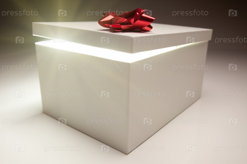 Подарочная коробка с красным бантом и светящимся содержимым